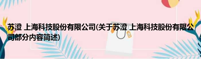 苏澄 上海科技股份有限公司(关于苏澄 上海科技股份有限公司部分内容简述)