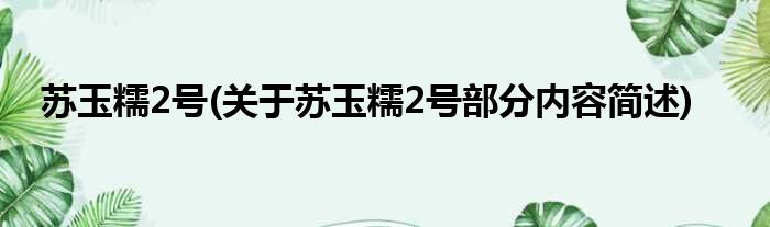 苏玉糯2号(关于苏玉糯2号部分内容简述)