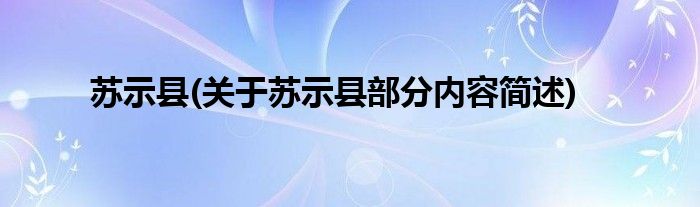 大家好,今天小方来说说一篇关于苏示县,关于苏示县部分内容简述的文章,那么现在就为大家来简单介绍下,希望对各位小伙伴们有所帮助。