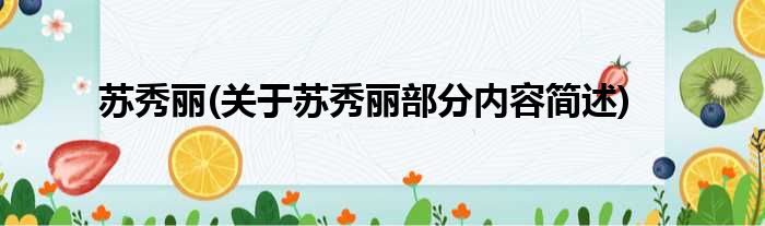 大家好,今天小方来说说一篇关于苏秀丽,关于苏秀丽部分内容简述的文章,那么现在就为大家来简单介绍下,希望对各位小伙伴们有所帮助。