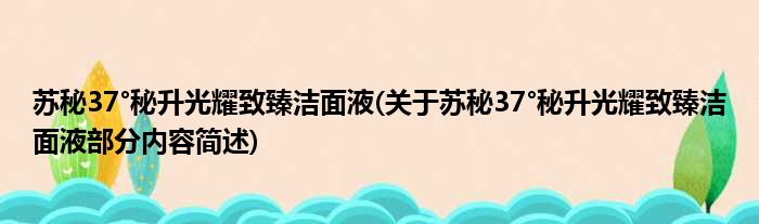 苏秘37°秘升光耀致臻洁面液(关于苏秘37°秘升光耀致臻洁面液部分内容简述)