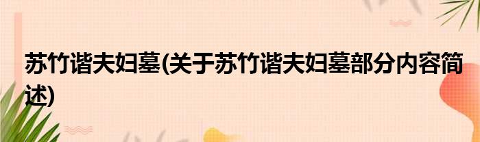 苏竹谐夫妇墓(关于苏竹谐夫妇墓部分内容简述)