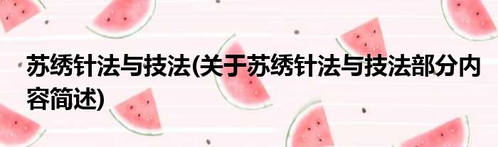 苏绣针法与技法(关于苏绣针法与技法部分内容简述)