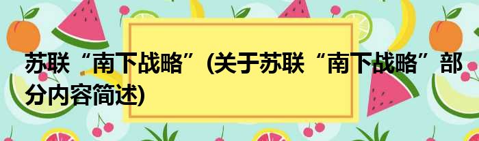 苏联“南下战略”(关于苏联“南下战略”部分内容简述)