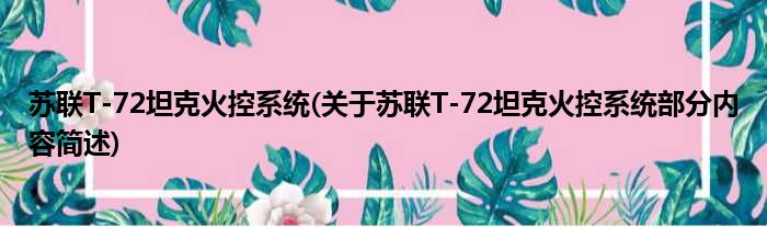 苏联T-72坦克火控系统(关于苏联T-72坦克火控系统部分内容简述)