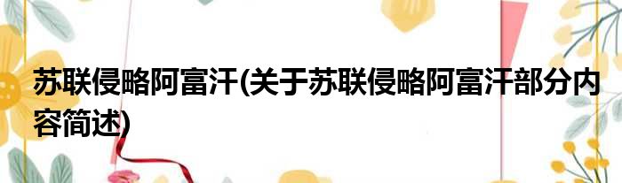 苏联侵略阿富汗(关于苏联侵略阿富汗部分内容简述)