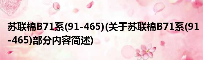 苏联棉B71系(91-465)(关于苏联棉B71系(91-465)部分内容简述)