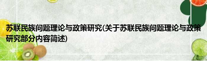 苏联民族问题理论与政策研究(关于苏联民族问题理论与政策研究部分内容简述)