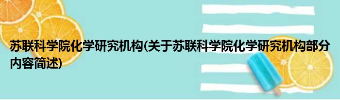 苏联科学院化学研究机构(关于苏联科学院化学研究机构部分内容简述)