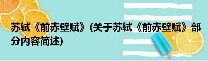 苏轼《前赤壁赋》(关于苏轼《前赤壁赋》部分内容简述)