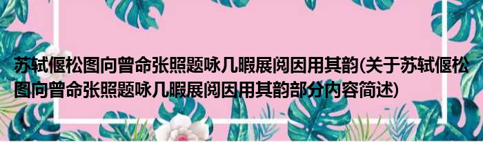 苏轼偃松图向曾命张照题咏几暇展阅因用其韵(关于苏轼偃松图向曾命张照题咏几暇展阅因用其韵部分内容简述)