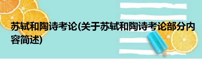 苏轼和陶诗考论(关于苏轼和陶诗考论部分内容简述)