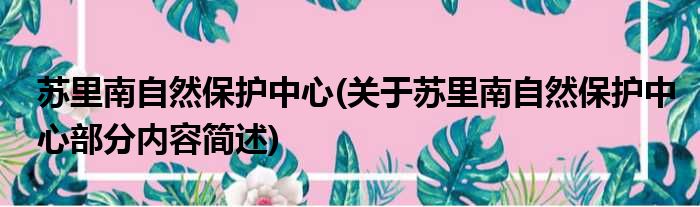 苏里南自然保护中心(关于苏里南自然保护中心部分内容简述)