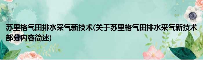 苏里格气田排水采气新技术(关于苏里格气田排水采气新技术部分内容简述)