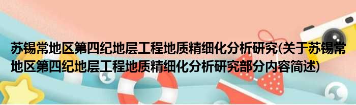 苏锡常地区第四纪地层工程地质精细化分析研究(关于苏锡常地区第四纪地层工程地质精细化分析研究部分内容简述)