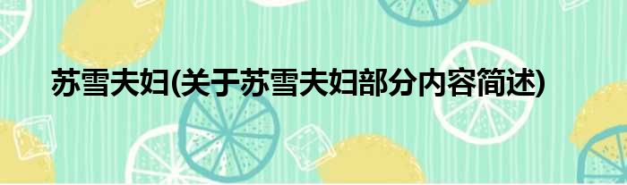 苏雪夫妇(关于苏雪夫妇部分内容简述)