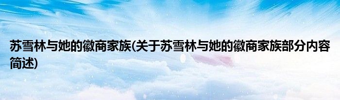 苏雪林与她的徽商家族(关于苏雪林与她的徽商家族部分内容简述)
