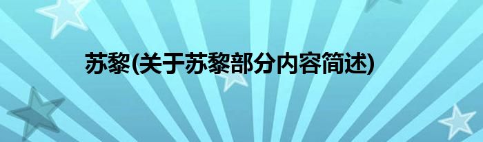 大家好,今天小方来说说一篇关于苏黎,关于苏黎部分内容简述的文章,那么现在就为大家来简单介绍下,希望对各位小伙伴们有所帮助。