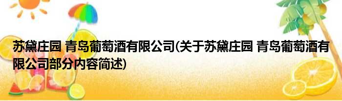苏黛庄园 青岛葡萄酒有限公司(关于苏黛庄园 青岛葡萄酒有限公司部分内容简述)