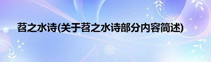 大家好,今天小方来说说一篇关于苕之水诗,关于苕之水诗部分内容简述的文章,那么现在就为大家来简单介绍下,希望对各位小伙伴们有所帮助。