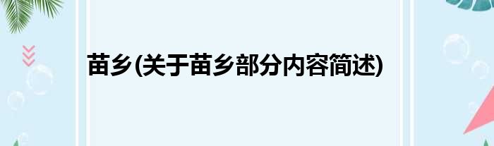 苗乡(关于苗乡部分内容简述)