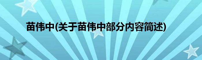大家好,今天小方来说说一篇关于苗伟中,关于苗伟中部分内容简述的文章,那么现在就为大家来简单介绍下,希望对各位小伙伴们有所帮助。