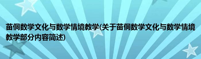 苗侗数学文化与数学情境教学(关于苗侗数学文化与数学情境教学部分内容简述)