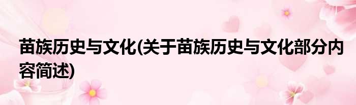 苗族历史与文化(关于苗族历史与文化部分内容简述)