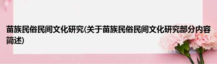 苗族民俗民间文化研究(关于苗族民俗民间文化研究部分内容简述)