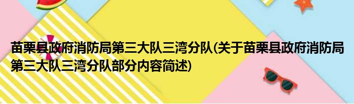 苗栗县政府消防局第三大队三湾分队(关于苗栗县政府消防局第三大队三湾分队部分内容简述)