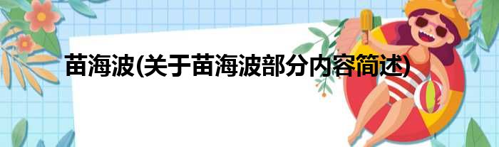 大家好,今天小方来说说一篇关于苗海波,关于苗海波部分内容简述的文章,那么现在就为大家来简单介绍下,希望对各位小伙伴们有所帮助。
