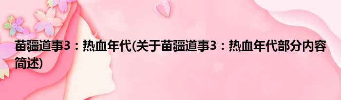 苗疆道事3:热血年代(关于苗疆道事3:热血年代部分内容简述)