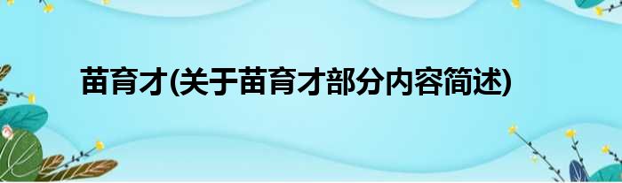 大家好,今天小方来说说一篇关于苗育才,关于苗育才部分内容简述的文章,那么现在就为大家来简单介绍下,希望对各位小伙伴们有所帮助。