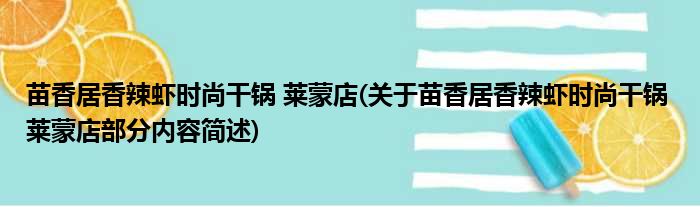 苗香居香辣虾时尚干锅 莱蒙店(关于苗香居香辣虾时尚干锅 莱蒙店部分内容简述)