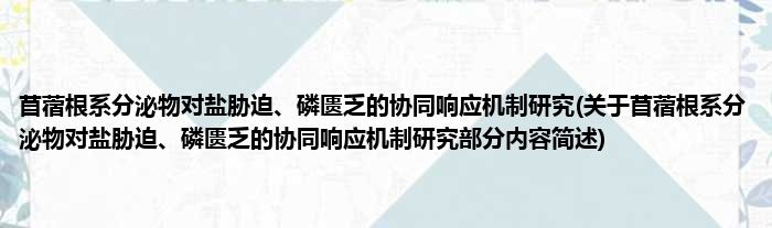 苜蓿根系分泌物对盐胁迫、磷匮乏的协同响应机制研究(关于苜蓿根系分泌物对盐胁迫、磷匮乏的协同响应机制研究部分内容简述)