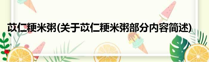 苡仁粳米粥(关于苡仁粳米粥部分内容简述)