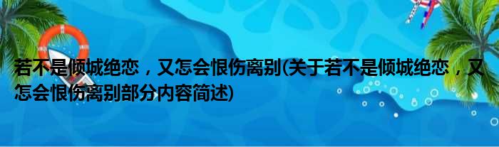 若不是倾城绝恋,又怎会恨伤离别(关于若不是倾城绝恋,又怎会恨伤离别部分内容简述)