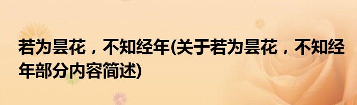 若为昙花,不知经年(关于若为昙花,不知经年部分内容简述)