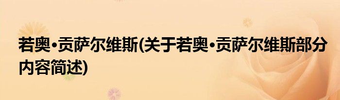 若奥·贡萨尔维斯(关于若奥·贡萨尔维斯部分内容简述)