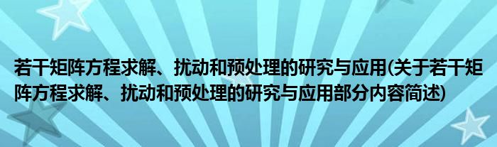 大家好,今天小方来说说一篇关于若干矩阵方程求解、扰动和预处理的研究与应用,关于若干矩阵方程求解、扰动和预处理的研究与应用部分内容简述的文章,那么现在就为大家来简单介绍下,希望对各位小伙伴们有所帮助。