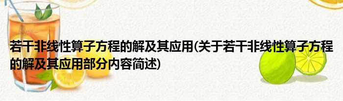 若干非线性算子方程的解及其应用(关于若干非线性算子方程的解及其应用部分内容简述)