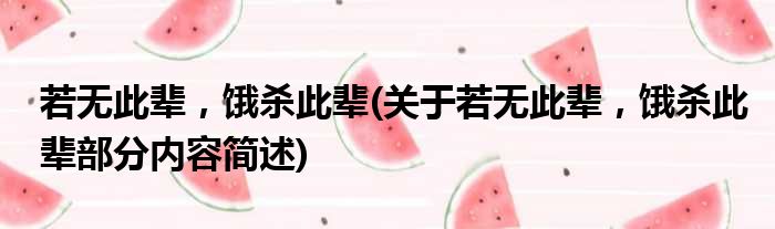 若无此辈,饿杀此辈(关于若无此辈,饿杀此辈部分内容简述)