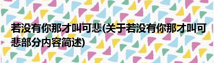 若没有你那才叫可悲(关于若没有你那才叫可悲部分内容简述)