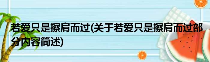 若爱只是擦肩而过(关于若爱只是擦肩而过部分内容简述)