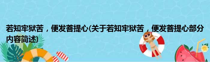 若知牢狱苦,便发菩提心(关于若知牢狱苦,便发菩提心部分内容简述)