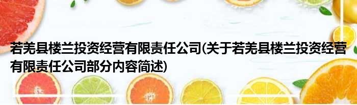 若羌县楼兰投资经营有限责任公司(关于若羌县楼兰投资经营有限责任公司部分内容简述)