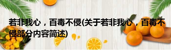 若非我心,百毒不侵(关于若非我心,百毒不侵部分内容简述)