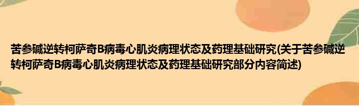 苦参碱逆转柯萨奇B病毒心肌炎病理状态及药理基础研究(关于苦参碱逆转柯萨奇B病毒心肌炎病理状态及药理基础研究部分内容简述)