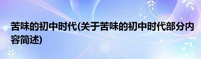 苦味的初中时代(关于苦味的初中时代部分内容简述)