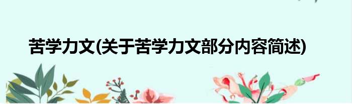 苦学力文(关于苦学力文部分内容简述)